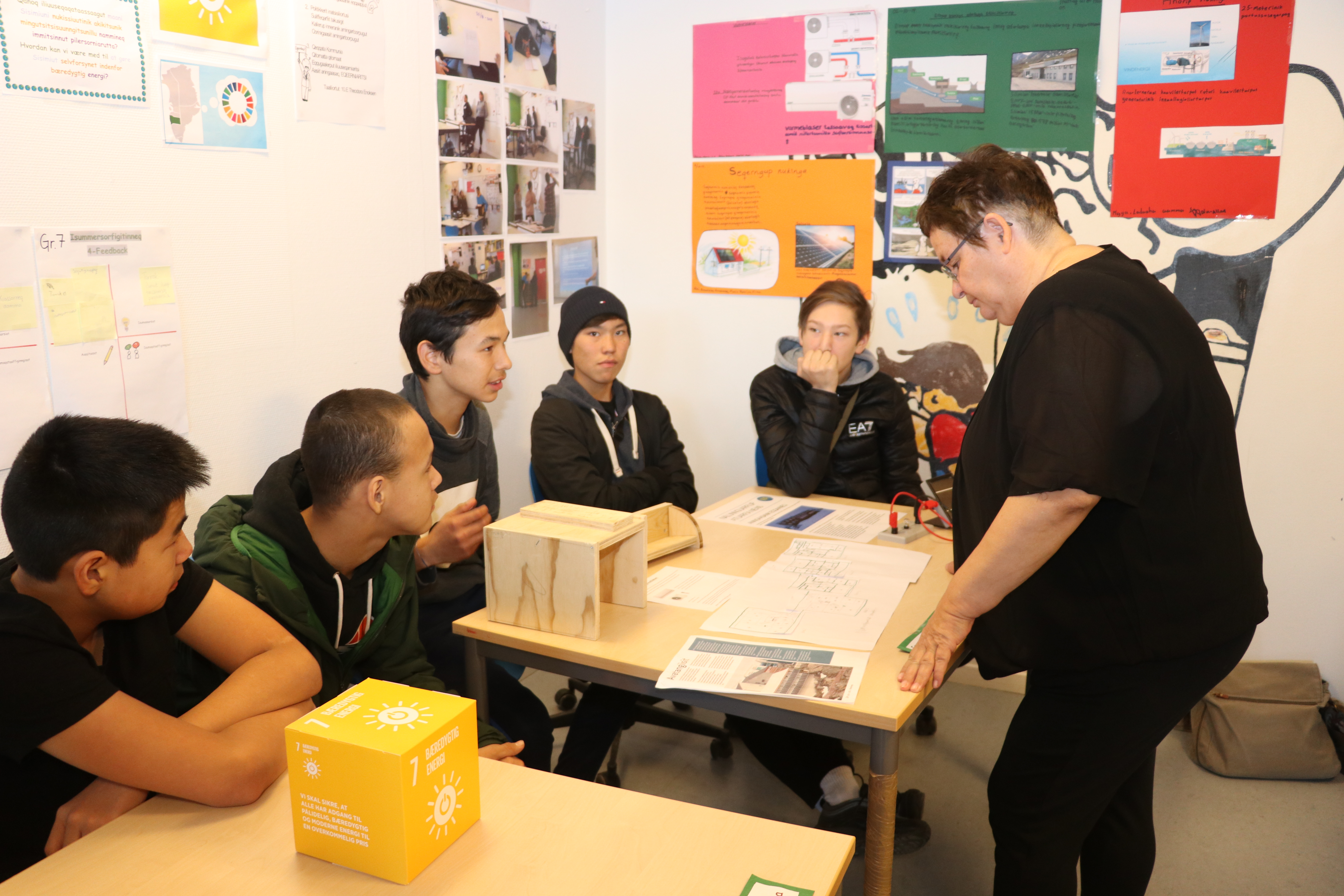 Hele ældstetrinnet havde fokus på verdensmål 7, som har titlen: Bæredygtig energi og de havde brugt meget tid på at samle viden om bæredygtig energiforbrug samt at lave innovative løsninger der kan nedsætte olieforbruget. En af eleverne Kimmernaq fra 9.D udtalte: ” Det føles rart at arbejde med løsninger, der kan gøre verden til et bedre sted ”.