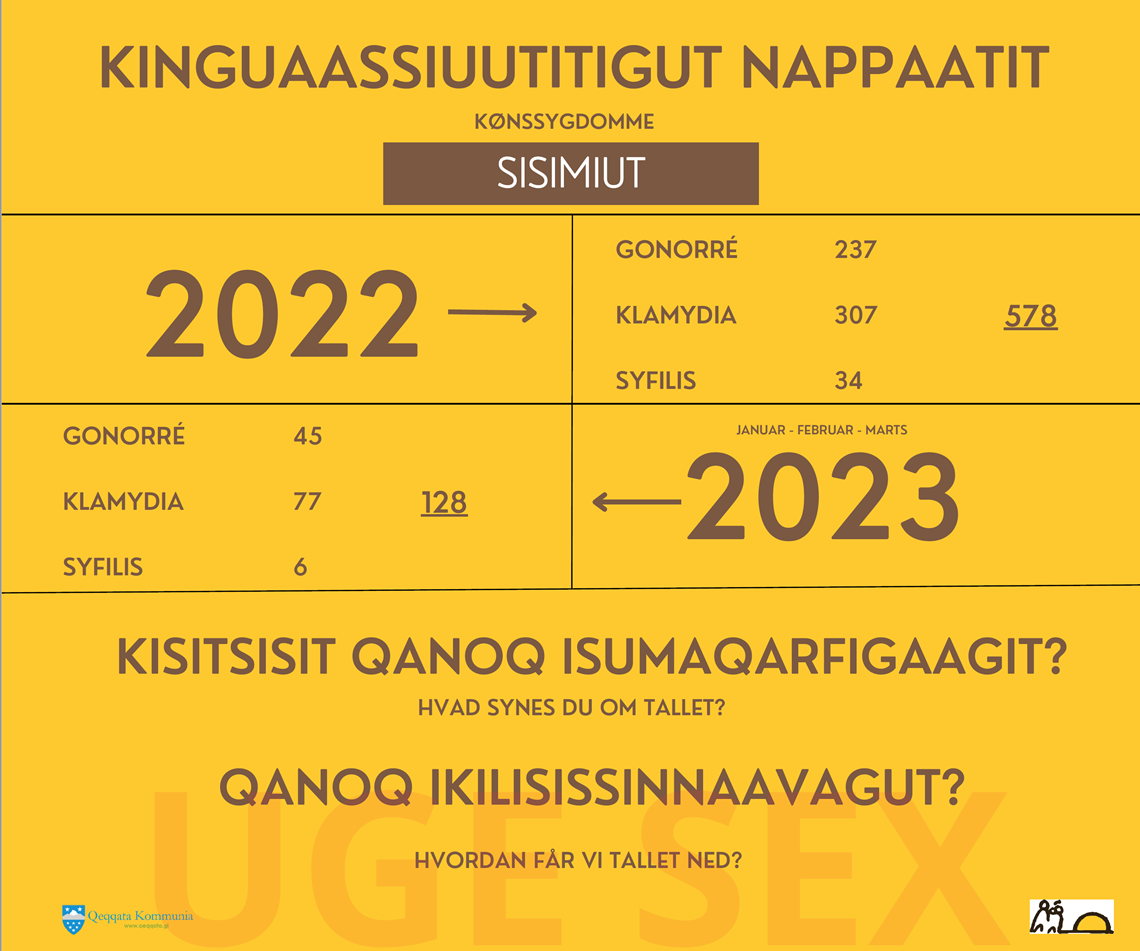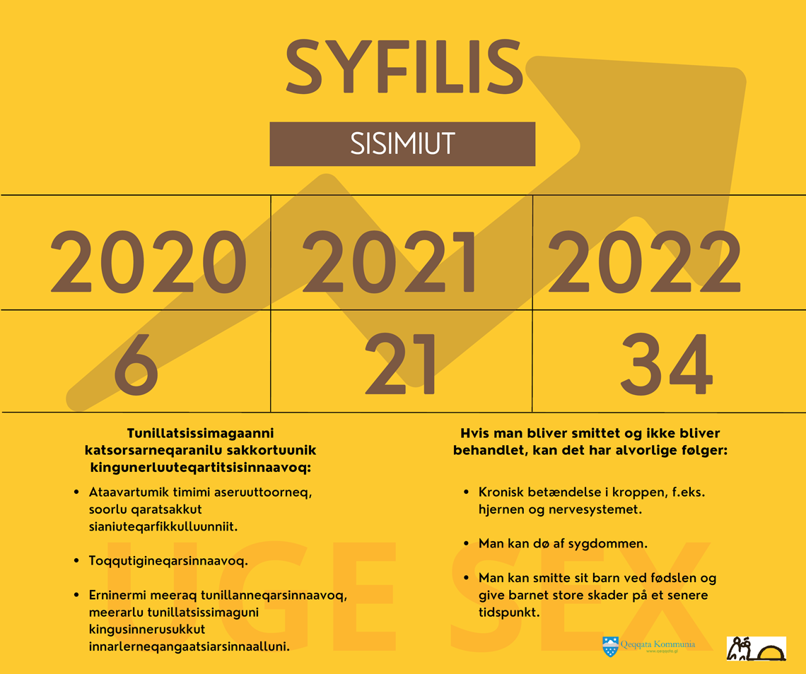 Atoqatigiinnermi imminut sianiginak illersuuteqanngikkuit syfilisimik tunillatsinnissat aarlerinaateqarpoq. Kisitsisimmi kingulliit takutippaat 2020-imi kinguaassiuutitigut nappaatit katillugit 616-it nalunaarsorneqarsimasut. Nappaatit gonorré, klamydia syfilisilu tassani pineqarput. 2021-imi kisitsisit ikileriarlutik 503-usut siorna 2022-imi amerleriaqqillutik 578-upput.