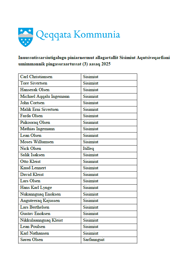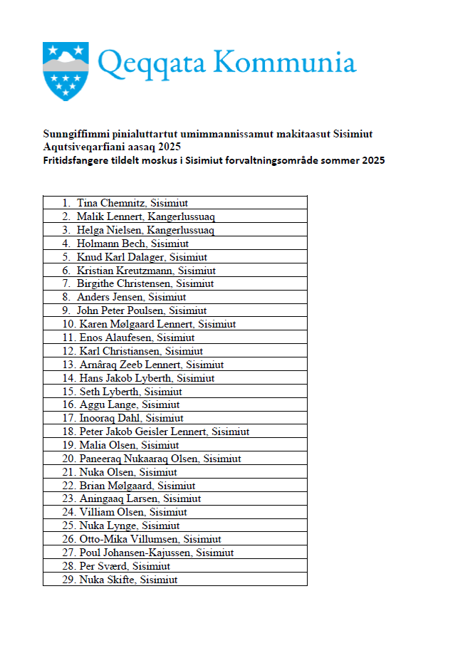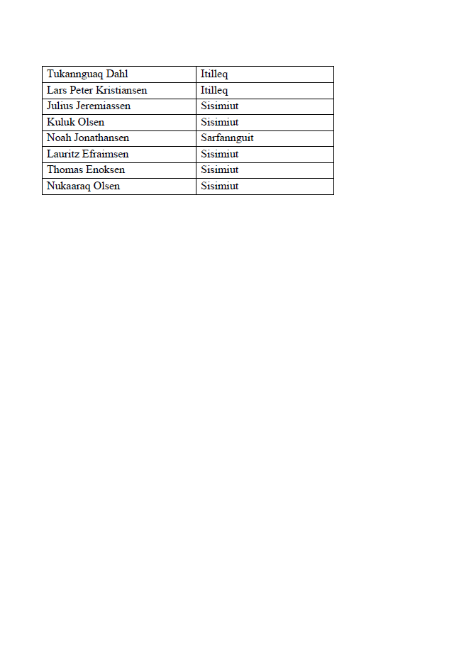 Peqatigiiffinnut tusarniutiginerisa kingorna piniartutut inuussutissarsiortunut aammalu saniatigooralugu pinialuttartunut imatut agguaanneqarput: