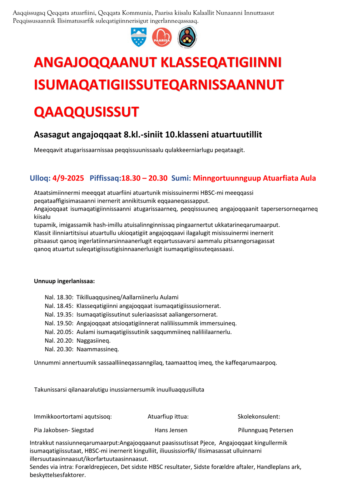 Nutaarsiassaq atuarukPingasunngornermi 26. novembari Qeqqata Kommuniani kommunip aaqqissugaanera pillugu Sisimiuni Maniitsumi nunaqarfinnilu taasisitsineq ingerlanneqarpoq